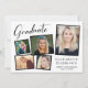 Moderne Graduiertenfeier mit einer 5-Foto-Collage verstreuter Bilder in Rahmen, "Graduate" in einer schicken Schrift, der Name des Grads in eleganter Typografie und ihre Schule und Klasse Jahr in einfacher Typografie. Personalisieren Sie Ihre Party-Details auf der Rückseite.