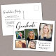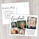 Moderne Abschlussfeier Einladung Postcard mit einer 5-Foto-Collage verstreuter Bilder in Rahmen, "Graduate" in einem stilvollen Drehbuch, der Name des Absolventen in eleganter Typografie und ihr Schule- und Klassenzjahr in einfacher Typografie. Fügen Sie Ihre Party-Details auf der Rückseite hinzu.
