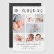 Ein schicker, um die Geburtsankündigung anzukündigen, mit dem Sie Ihr Neugeborenes Freunden und Familie vorstellen können, mit "Einführung" in großen Schriften, einer siebenjährigen Collage und ihrem Namen, Geburtsdatum und Geburtsstatistiken in einfacher moderner Typografie.