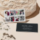 Die schicken und eleganten Visitenkarten für Fotografen enthalten sieben Ihrer besten Fotos, die in einem Collage Layout angeordnet sind und in modernen Schriften nach Ihrem Namen oder Firmennamen geteilt sind. Fügen Sie Ihre vollständigen Kontaktdaten auf der Rückseite in knalligem Weiß auf einem weichen schwarzen Hintergrund hinzu.