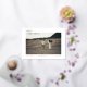Moderne und minimale Fotokarte mit "Save the Date" in Folie auf der oberen links Kartenseite, die das Foto überlagert
