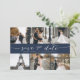 Wählen Sie die besten Bilder aus Ihrem Verlobung-Shooting oder Ihre Lieblingsfotos von Ihnen beiden für dieses perfekte Save the Date. Save the Date sind die Wörter handgeschrieben, um der Karte ein persönliches Gefühl zu geben. Die Vorderseite hat 6 Bilder und die Rückseite hat ein großes Bild mit einem weißen Filter oben. Bearbeiten Sie diese Save the Date Hochzeitskarte mit Ihren Informationen und passen Sie sie für weitere Farboptionen für Schriftart und Schriftart an.