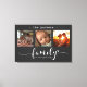 Diese atemberaubende Leinwand-Wandkunst zeigt eine wunderschöne Collage aus drei Fotos, in der hochgeschätzte Erinnerungen ausgestellt sind, die mit der herzlichen Botschaft "Familie ist alles" geschmückt sind. Das elegante Schwarz-Weiß-Design, kombiniert mit exquisiter Schrift und Drucktypografie, schafft ein anspruchsvolles und dauerhaftes Stück, das jeden Innenstil ergänzt. Personalisieren Sie es mit Ihrem Familiennamen. Erstellt von der einfachen Farmhouse Press.