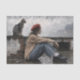 Moderne Frau mit Barett und Cat-Decoupage ist auf hochwertigem Decoupage-Seidenpapier gedruckt, ideal für die Restaurierung von Möbeln, Schubladenfronten, Schranktüren, Wandkunst und Mixed-Media-Projekten.