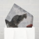 Moderne Frau mit Barett und Decoupage Katze Seidenpapier