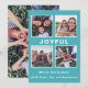 Dieses moderne 5-Foto-Urlaubsszenario mit einem fröhlichen Stil und einem fröhlichen Weihnachtsgrüßen mit Ihrem Namen auf einem wunderschönen blauen Hintergrund. Auf der Vorderseite befindet sich eine einfache Collage aus vier Fotos, auf der Rückseite dieser trendigen Karte befindet sich ein komplettes Foto.