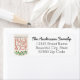 Das Design enthält den Text "Ihnen Frieden, Liebe & Freude wünschen" mit einem grünen und roten Urlaubszweig. Personalisieren Sie es mit Ihrem Namen und Ihrer Adresse.
