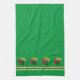 Dieses hellgrüne Küchentuch ist mit frischen Paprikaschoten und orange-gelben Streifen dekoriert. Ideal für eine vegetarische Küche.