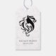 Elegantes und modernes Profil Silhouette Haarsalon Logo in schwarz, grau Marmor Preis Tags. Template stellt zwei Textzeilen vor Tag und zwei zusätzliche Textstellen auf der Rückseite des Tags für Website und Adresse oder andere zusätzliche Informationen bereit.