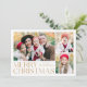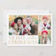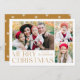 Einfache und elegante Urlaubskarte mit einer 3-Foto-Collage auf der Vorderseite mit "Frohe Weihnachten" in goldener moderner Schrift. Personalisieren Sie die Kartenvorderseite, indem Sie Ihre Fotos und Ihren Namen hinzufügen. Die Karte kehrt um, um das vierte Foto mit einem weißen Schneeflockenmuster anzuzeigen. Die Multi-Foto-Ferienkarte ist ideal, um alle Ihre Lieblings-Fotos anzuzeigen!
