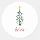 Moderne frohe Weihnachten Glauben Evergreen Tree Runder Aufkleber