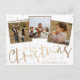 Moderne und schlichte Weihnachtsgrüßkarte mit stilvollem "Frohe Weihnachtsstext" in Imitaten mit Goldfolie. Dieses raffinierte Design bietet Platz für drei Fotos, sodass Sie es mit Ihren einzigartigen Bildern und Informationen anpassen können. Diese personalisierte Karte verbindet moderne Eleganz mit persönlicher Touch.