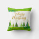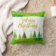 Moderne frohe Weihnachtsbaumen Gold Script Kissen bietet moderne Weihnachtsbäume in Grün und Gold mit dem Text "Frohe Weihnachten" in elegantem goldenen Drehbuch. Ideal für Weihnachtsgeschenke und Urlaubsstimmung. Entworfen von ©Evco Holidays www.zazzle.com/store/evcoholidays