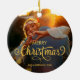 Moderne frohe Weihnachtsfamilie Foto Name Keramik Ornament