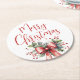 Moderne frohe Weihnachtsschrift Holly Bow Red Runder Pappuntersetzer