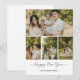 Feiern Sie den Beginn eines strahlenden neuen Jahres mit dieser modernen Happy New Year-Fotocollagekarte, die Ihre wertvollsten Familienmomente in einem stilvollen und eleganten Layout präsentiert. Diese anpassbare Weihnachtskarte enthält eine saubere und zeitgemäße Collage mit vier Fotos, gepaart mit minimalistischer, aber festlicher Typografie, die die Wärme, Freude und den Optimismus der Saison perfekt einfängt.