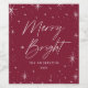 Moderne Ferienweinetiketten mit "Merry and Bright" in weißem, handgeschriebenem Schriftzeichen umrahmt von Sternengrenzen mit einem Cranberry/Bordeaux Hintergrund. Personalisieren Sie die fröhlichen und hellen Weinetiketten, indem Sie Ihren Familiennamen und das unten stehende Jahr hinzufügen.