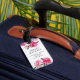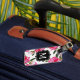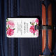 Stilvolle Reisegepäck-Taschen verfügen über einen dekorativen schwarzen Rahmen mit eigenem Monogramm-Buchstaben in Weiß und ein trendiges Hintergrundmuster mit tropisch rosa Aquarellfarben-Blume und antiken goldenen Schweizer Polka-Punkten. Personalisieren Sie die Kontaktdaten auf der Rückseite.