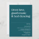 Gute Liebe, gute Musik und schlechtes Tanzen. Modernes, lustiges minimales Design auf aquamarinem Hintergrund mit trendiger Typografie. Der Text kann leicht für ein einzigartiges Design für Ihren besonderen Tag personalisiert werden.