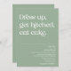 Dress auf, komm runter, iss Kuchen. Modernes, lustiges minimales Design mit trendiger Typografie auf schlauer grüner Basis. Der Text kann leicht für ein einzigartiges Design für Ihren besonderen Tag personalisiert werden.