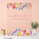 Elegante moderne, im Frühling handbemalte Blume Aquarell mit hübschen Wildblumen und Brautparty mit Pinselschrift empfangen Sie mit einem transparenten Schild mit einer modernen Kalligraphie mit rosa, weiß, lila, blau, rot und orange Blume mit Grün.