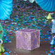 Moderne Gastgeschenk Hochzeit aus Gold und Lila Marmor