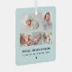 Moderne 5 Fotos auf einem Raster, das Ihre Lieblingsfotos von Neugeborenen mit Namen und Geburtsstatistiken in Türkis, Blau und Grün zeigt, Metall-Ornament.