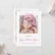 Mit dieser modernen Ankündigungskarte verkünden Sie die Geburt Ihres Kleinen. Auf beiden Seiten der Karte zeigen Sie Fotos Ihres Neugeborenen. Hier in einem rosa Farbschema dargestellt, aber es ist einfach, den Stil und die Farbe des Schriftartes zu ändern. Personalisieren Sie sich mit Ihren Geburtsdetails und Sie sind gut zu gehen!