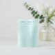 Modernes Design mit individualisierbaren schwarzen Sans Serif und kursiven Texten, einstellbaren Ohrring-Guides und Platz auf der Rückseite für Ihr Logo (oder löschen, wenn Sie möchten) auf einem pastellblauen Imitat gebürstet Metall Hintergrund.