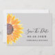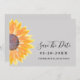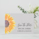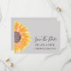 Lass deinen Freunden und Bekannten, wann dein besonderer Tag mit dieser schlichten, stilvollen Sonnenblumenhochzeit kommen wird. Die Karte rette dem Tag und ist mit einer Aquarellsonnenblume auf einem weichen grauen Hintergrund dekoriert. Original Wasserfarbe © Michele Davies.