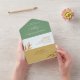 Elegante, moderne Einladung zum Hochzeitsfest mit perforiertem UAWG in einer schönen Farbpalette in Gelb-, Grün- und Grautönen. Jeder Abschnitt in einem anderen reichen Ton. Delikate Imitate Goldfolie-Blätter zeigen Ihre Details. Umweltfreundliche Einladung, da keine zusätzlichen Beilagen, RSVP-Karten oder sogar Umschläge nötig sind, diese Einladung hat alles! Die Möglichkeit, sowohl Hochzeitsfeier und Empfang Details hinzuzufügen, als auch UAWG postcard bereit für die Gäste zu füllen und zu schicken! Elegantes minimalistisches Design in Schwarz/Weiß mit modernen handgeschriebenen Kalligrafiedetails. Die Option, Einladungen mit gedrucktem (oder später per Hand geschriebenem) Gastnamen auf der Rückseite zu bestellen, damit Sie ihn ohne Umschläge verschicken können. Wenn Sie Umschläge bevorzugen, löschen Sie einfach den Namen und die Adresse der Gäste aus den Textfeldern, um sie zu entfernen. Ein attraktives modernes Design, ideal für das elegante, aber dennoch praktische und Öko-freundliche Ehepaar!
