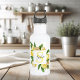 Moderne gelbe Lemonen Rahmen & Blätter mit Namen Edelstahlflasche