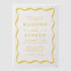 Mit unserer modernen Yellow Wavy Frame Vellum Hochzeitseinladung verbinden sich Boho-Charme und Retro-Eleganz perfekt. Mit fett gelben Schriftzeichen auf einem schieren Vellum-Hintergrund ist diese Einladung gerahmt mit einem spielerisch gelben, gewellten Rahmen, der eine Touch Vintag inspirierter Laune hinzufügt. Dieses Design ist vollständig anpassbar und ermöglicht es Ihnen, Ihre Namen und Ihre Hochzeitsdetails auf einzigartige und stilvolle Weise zu präsentieren. Ideal für Paare, die eine unterhaltsame, moderne und nostalgische Einladung suchen, lädt diese Vellum Hochzeit die Sets zu einem angenehmen und anspruchsvollen Ton für Ihren besonderen Tag ein. Ideal für jede Feier, bei der Liebe und Stil wunderbar zusammenkommen.