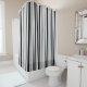 Fügen Sie einen stilvollen Akzent Ihrem Badezimmer mit einem kundenspezifischen Duschvorhang hinzu, der verschiedene Schatten der grauen, schwarzen und weißen Linien in unterschiedlichen Breiten kennzeichnet, die ein hoch entwickeltes modernes Streifenmuster bilden.