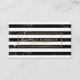 Diese Designerkarte besticht durch ein modernes Motiv aus abwechselnden schwarz-weißen Marmorstreifen und eine schicke Ästhetik auf dem Trend. Ihr Name oder Ihr Firmenname ist minimal in einem dünnen Imitat-Goldrahmen gestylt. Diese doppelseitige Karte bietet viel Platz auf der Rückseite für Ihre Kontaktinformationen und Details. Erstellt für Innenarchitekten, Dekorateure, Zuhause-Stagers, Mode-Boutiquen, Architekten und Kreative. Kunst und Design © 1201AM Design Studio | www.1201am.com