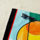 Schönes abstraktes Design mit geometrischen Formen von Kreisen, Linien und Rechtecken in wunderschönen kühnen Farbtönen verleiht Ihrem Strand oder Ihrer Poolzeit eine schöne Touch der Eleganz. Hellgelber Kreis, orangefarbene und rote Formen, blau und türkisfarbene Formen, die durch fette schwarze Linien hervorgehoben werden, machen das Badetuch zum Besten!