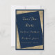 Eine moderne geometrische Marineblau und Imitate Gold Wedding Save The Date Einladung.Diese Luxus-Marinebräu und Goldhochzeit speichern das Datum Einladungen ist perfekt für jedes elegante und raffinierte Glam Mädchen. Dieses Design eignet sich perfekt für das trendige und stilvolle Party-Event. Passen Sie dieses Design mit Ihren eigenen Nachrichten und personalisierten Informationen an. Alle Designs sind gedruckt.