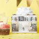 Moderne geometrische, fröhliche Typografie mit vielen Fotos Weihnachtsgeschenkverpackung. Teil einer Ferienkollektion.
