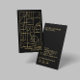 Ein vertikales Motiv geometrischer Formen und künstlerischer Deko-Formen wird auf diesem Schwarz-Imitat-Gold-Visitenkartendesign modern. Diese on-Trend-Ästhetik ist perfekt für alle Kreativberufe wie Innenarchitekten, Schmuckmacher, Handwerker, Modedesigner und vieles mehr. Art and Design © 1201AM Design Studio | www.1201am.com