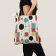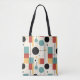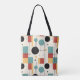 Mit diesem modernen, geometrisch gestalteten Totbeutel, das ein zeitgenössisches Design bietet, das sowohl elegant als auch funktional ist, machen Sie eine kühne Mode. Diese stilvolle Tasche präsentiert ein auffallendes geometrisches Muster in einer lebhaften Palette von aquamarinen, orangen, schwarzen, cremefarbenen und rostigen Formen und verleiht dem Alltag einen frischen und künstlerischen Flair. Das lebendige Design zeichnet sich durch seine ideale Ergänzung aus und ist somit ein ideales Accessoire für diejenigen, die Liebe haben, ihre Individualität zum Ausdruck zu bringen.