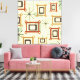 Ein cooles atomares Zeitmuster mit gelbem Hintergrund und minimalistischen Retroformen.