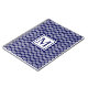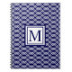 Dieses moderne, trendige Notebook zeichnet sich durch ein weißes geometrisches Gitter aus, das sich durch ein komplett in marineblau gehaltenes Design auszeichnet. In der Mitte befindet sich ein gerahmter Monogramm-Brief in der gleichen Marinefarbene.