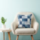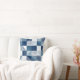 Dieses Kissen ist modern, geometrisch und mit handgezeichnet Linien in blauen Farbtönen von hellblau bis marineblau mit weißer Farbe gestaltet.