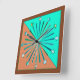Uhr in einem modernen, geometrischen Sonnenburstdesign aus Dreiecken, stündlich mit einer Diamantform versehen, in Aqua-/Türkis-, Milch- und Dunkelschokoladenbraun in aquamarin-blauen Farbtönen