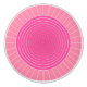 Mittelalterliche Moderne abstrakte Sonnenbrille mit seidigem Gradienteneffekt - tiefes Korallenrosa auf einer weichen Koralle / Muschel mit rosa Hintergrund