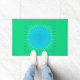 Doormat in einem modernen abstrakten Sonnenbrand Mitte des Jahrhunderts mit einem seidigen, gestuhlten Effekt - reich an Ceruleenblau auf einem jadegrünen Hintergrund