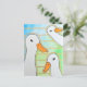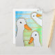 Auf dieser Postkarte befindet sich eine Aquarellmalerei, in der drei weiße Enten auf einem blau-grünen Hintergrund mit geometrischen Goldlinien dargestellt sind. Hier finden Sie modernere Tiergeschenke und weitere Entengeschenke für Tierfreunde. Original Artwork vom Wilderness Store