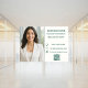 Moderne Fensterfolie für Unternehmen mit Foto, Kontaktinformationen und QR-Code. Perfekt für Immobilienmakler, Salons, Boutiquen und Büros. Einfach anzupassen mit Ihrem eigenen Branding, um eine professionelle und einladende Ladengestaltung zu erstellen. Elfenbeinfarbener Hintergrund, smaragdgrüner Text.
