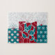 Modernes schwedisches Holiday Wrapped Geschenke Custom Puzzle. Unsere Vintage skandinavische Rot-Blau-Urlaubskunst auf verpackten Geschenken mit einem modernen, blumenweißen Hintergrund. Sie können die Größe anpassen.