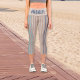 Capri Leggings in Beige und Blau. Individuelle Anführungskunst Hashtag Design "#momlife" in Strandfarben. Für beschäftigte Mütter, die ihre Arbeit Liebe.